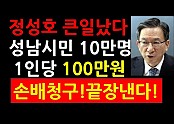 '(성남시장 발표!)정성호 큰일났다! 성남시민 10만명 1인당 100만원 손배청구! 끝장낸다!'