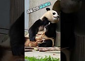 '죽순 준비하고 미소 짓는 사육사