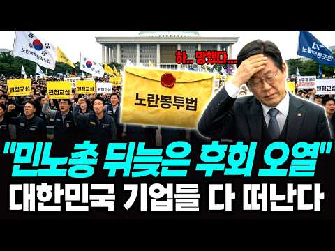 노란봉투법 이래서 하지말라고했다! 민노총 뒤늦은 후회로 오열중, 한국 기업들 다 떠난다