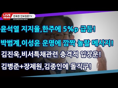 속보)윤석열 지지율,한주에 5%p 급등!박범계,이성윤 …