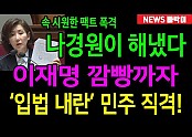 속보) 이재명 재판 재개 사형선고, 나경원이 해냈다! '입법 내란' 민주 쑥대밭, 위헌정당 해산 시켜야!!'