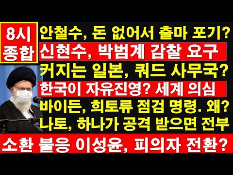 8시 종합] 안철수,돈 없어서 출마 포기?신현수,박범계 감찰 요구.커지는 일본, 쿼드 사무국?국이 자유진영?…