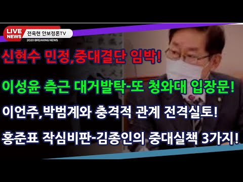속보16)신현수 민정,중대결단 임박!이성윤 측근 대거발탁-또 청와대 입장문!이언주,박범계와 충격적 관계 전격실토!홍준표 작심비…