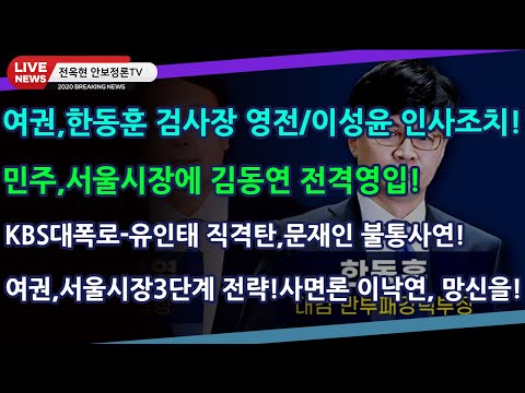 속보)여권,한동훈 검사장 영전/이성윤 인사조치!민주,서울시장에 김동연 전격영입!KBS대폭로-유인태 직격탄,문…