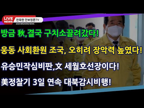긴급35)방금 秋,결국 구치소끌려갔다!웅동학원 사회환원 조국, 오히려 장악력 높였다!유승민작심비판,文 세월호…