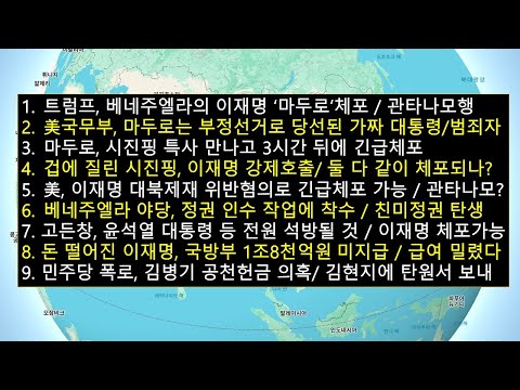 트럼프,베네주엘라의 이재명 '마두로' 긴급체포/美국무부,마두로는 부정선거로 당선된 범죄자일뿐/마두로,시진핑 특사 만나고 3시간…