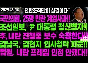 LIVE] 국민의힘, 25명 반란 계엄사과!!조선일보, 尹 대통령 정신병자!!李, 내란 진행중 보수 숙청한다…