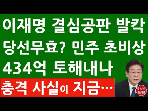 긴급! 이재명 내일 선거법 결심 공판 충격 변수! 민주 434억 대선비용 반환? (진성호의 융단폭격)