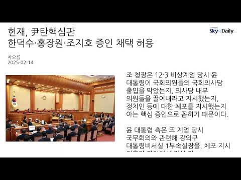 헌재, 尹탄핵심판 한덕수·홍장원·조지호 증인 채택 허용 디케DIKE 오늘방송 0 712 2025.02.14 22:33 https://youtu.be/ZZg4RaEeuog + 25 `