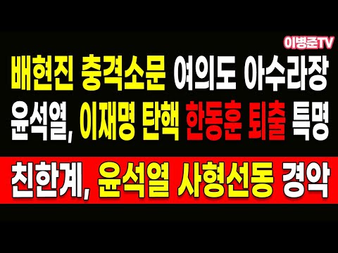 윤석열, 이재명 탄핵 한동훈 퇴출 특명! 친한계, 윤석열 사형선동 경악!