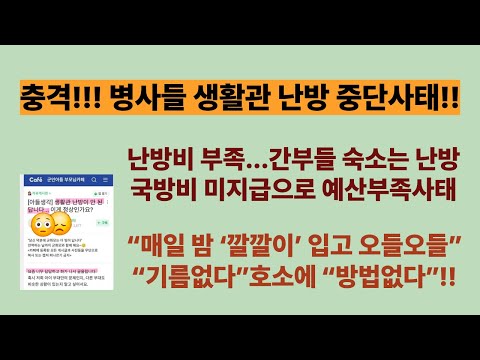 이럴 수가...병사들 생활관 난방 중단사태!! 난방비 부족...간부들 숙소는 난방. “매일 밤 ‘깔깔이’ 입고 오들오들”
