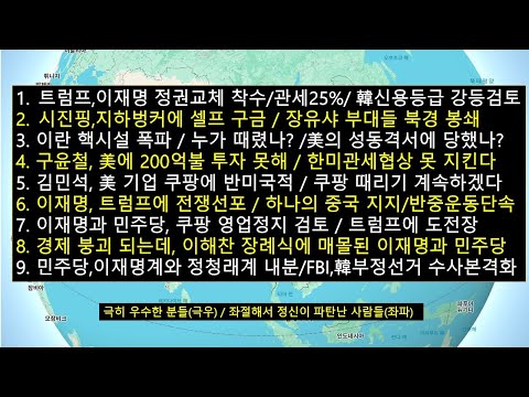 트럼프,이재명 정권교체 착수/관세25%/한국 신용등급 2단계 강등 검토/이재명과 구윤철,한미관세협정 못 지키겠다 '전쟁선포'/…