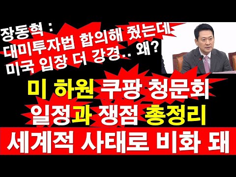 미 하원 쿠팡 청문회 일정과 쟁점 총정리. 세계적 사태로 비화 돼? 장동혁 : 대미투자법 합의해 줬는데, 미국 입장 더 강경.…