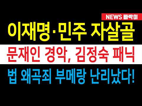 속보) 이재명·민주 자살골, 김정숙 울고불고 난리난 사연! 문재인 경악, '법 왜곡죄' 부메랑 일파만파!!