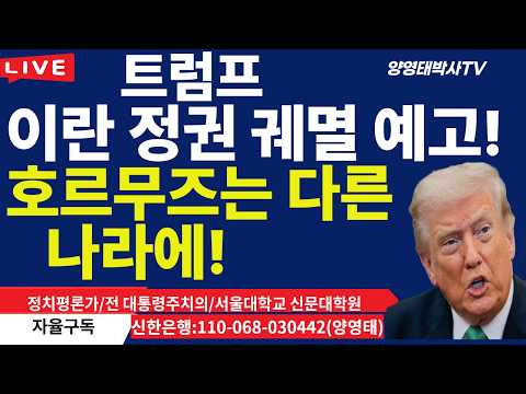 트럼프, 이란 정권 궤멸 예고!...호르무즈는 다른 나라에.../2026.03.20 디케DIKE 양영태 0 8 1시간전 https://youtu.be/vjFqSkdaj5k + 0 https://youtu.be/aflCMvNQIKw + 0 .