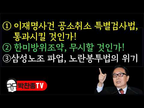 ① 이재명사건 공소취소 특별검사법, 통과시킬 것인가!② 한미방위조약, 무시할 것인가! ③삼성노조 파업, 노란봉투법의 위기