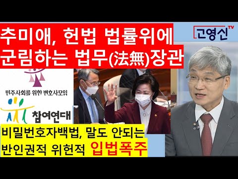 고영신TV](1부)추미애 입법폭주, 민변 참여연대도 맹비난/평정심 회복이 급선무(출연: 여상원 변호사/ 법무법인 로료스)