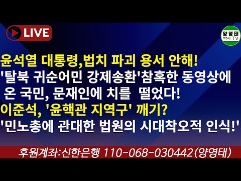 윤통,법치파괴 용서안해!/'탈북귀순어민강제송환' 참혹한영상에 온국민문재인에 치를떨었다!/이준석, '윤핵관지역구'깨기?/'민노총…