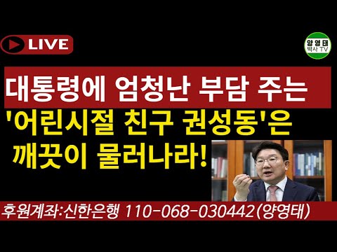 대통령에 엄청난 부담만 주는 '어린시절 친구 권성동'은 깨끗이 물러나라!/2022.07.20' 꽃사슴 양영태 0 1188 2022.07.20 15:03 https://youtu.be/mtC3PtCuIOE + 25 ..m