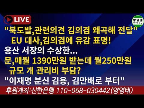 북도발,관련의견 김의겸왜곡해 전달"EU대사,김의겸에 유감표명!/용산서장의 수상한./문,매월1390받는데 월250규모개…