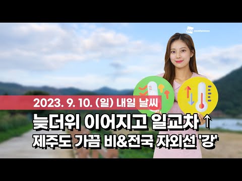 웨더뉴스] 내일의 날씨 (09월 10일)/ 내일 구름많고 늦더위 계속…제주 한때 비