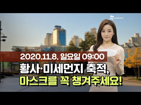 웨더뉴스] 오늘의 미세먼지 예보 (11월 8일 09시 기준) / 휴일 맑고 쌀쌀, 새로운 거리두기 속 도심은?