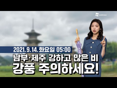 웨더뉴스] 오늘의 날씨 (9월 14일 05시 기준) / 오늘(화) 태풍 ‘찬투’ 간접 영향…제주도, 남해안 많은 비