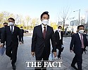 오세훈 서울시장(가운데)이 8일 오전 서울 중구 서울시청으로 첫 출근을 하는 가운데 과거 오 시장 임기 때 수행비서였던 정상훈…