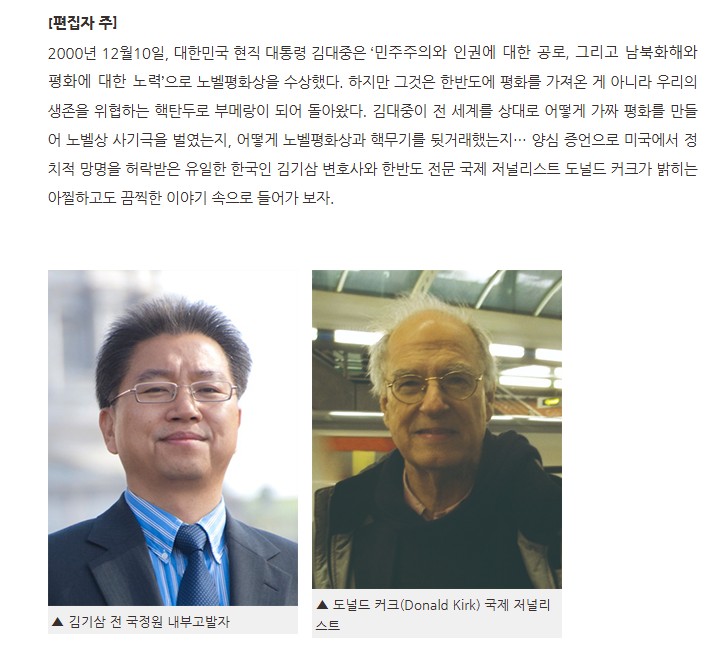 노벨상 공작팀은 노벨상위원회의 수상자 선정 논의가 본격화되는 시기에 맞춰 임동원 국정원장이 북한의 김용순을 초청하는 계획을 추진했다.