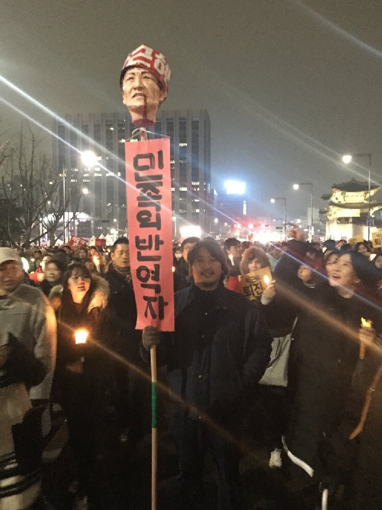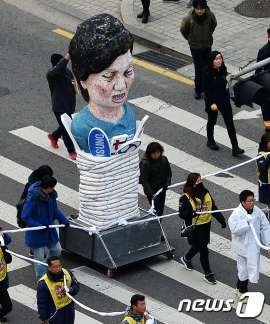 민중총궐기 현장의 박근혜 효수형 인형 앞에 선 손석희?