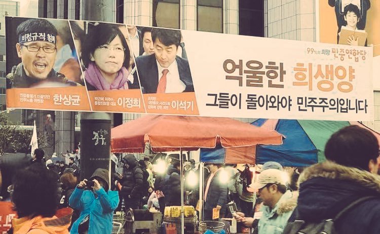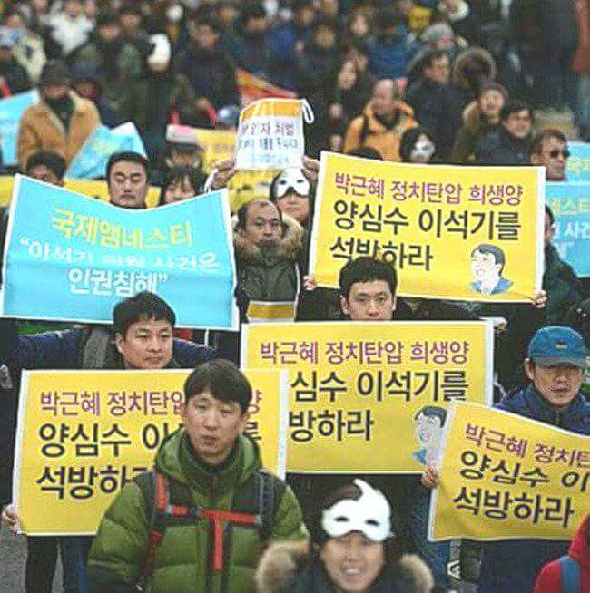 (이석기,이정희, 한상균)이 억울한 희생양, 석방하라는 플래카드