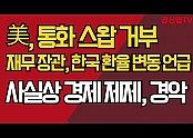 '美, 통화 스왑 거부/재무 장관, 한국 환율 변동 언급/사실상 경제 제제, 경악'