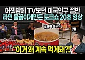 '어젯밤에 TV보던 미국인구 절반 라면 물끓이게만든 토크쇼 20초 영상 // “이거 왜 계속 먹게돼?!”'