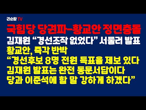'국힘 당권파-황교판 정면충돌... 김재원 파문진화 발…