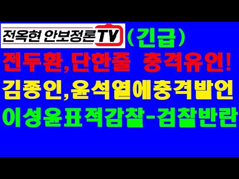 긴급)강성범 "윤석열, '종부세 폭탄' 발언 맹공!전두환, "놀라운 한줄 유언" 전격공개!김종인,방금 충격발…