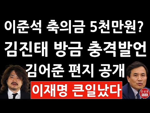 긴급! 김진태 방금 충격 입장문! 김어준 편지 공개! 이준석 "축의금 5000만원 감사" 편지 받았다! 박철…