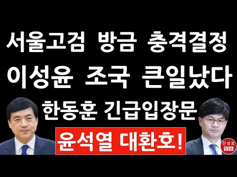 긴급! 서울고검, 방금 '조국 수사팀' 무혐의 결정! 이성윤 조국 큰일났다! 한동훈 방금 긴급입장문! (진성…