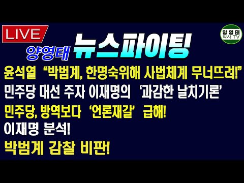 뉴스파이팅] 윤석열, 박범계가 한명숙 위해 사법체계 무너뜨려!/민주대선주자 이재명 '과감한 날치기론'/민주,…