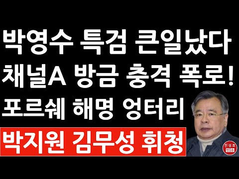긴급! 채널 A 방금 박영수 특검 관련 충격 폭로! 포르쉐 해명은 엉터리! 116억 사기극 대파문! 박지원 …
