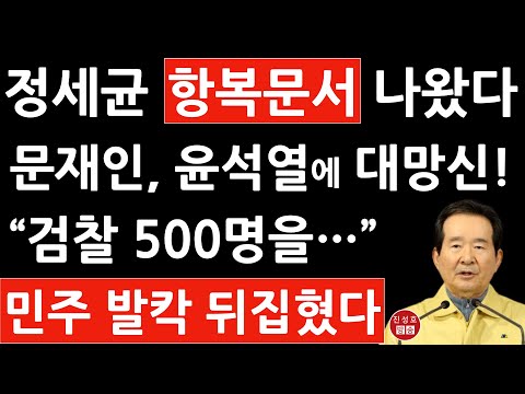 '간굽! 벙금 정세균 '항복 문서' 발표! 윤석열에 굴복한 문재인 정권! 민주 지금 난리났다! (진성호의 융…