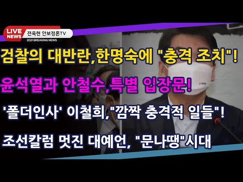조선칼럼 멋진 대예언, "문나땡"시대!검찰의 대반란,돌연 한명숙에 "충격적 조치"!윤석열과…