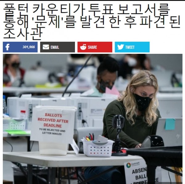 조지아주 선관위는 풀턴시의 개표과정에 의문이 제기된 것과 관련해 조사관들을 파견하기로 결정했다고 발표했습니다. 개표된 숫자를 서버에 입력하는 과정에 누락이 있었다는 의혹인데 주당국은 재입력 작업을 벌이고 있습니다. 이는 조지아주 전체 개표 결과에도 영향을 미칠 것으로 보입니다. 조지아주는 트럼프와 바이든의 득표 수 차이가 7천2백여 표밖에 되지 않아 재개표가 유력한 곳입니다. 이 문제는 트럼프 대통령도 트윗을 하며 깊은 관심을 보이고 있습니다.