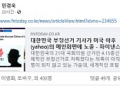 (민경욱페이스북펌)대한민국 부정선거 기사가 미국 야후(yahoo)의 메인화면에 노출/2020/10/8