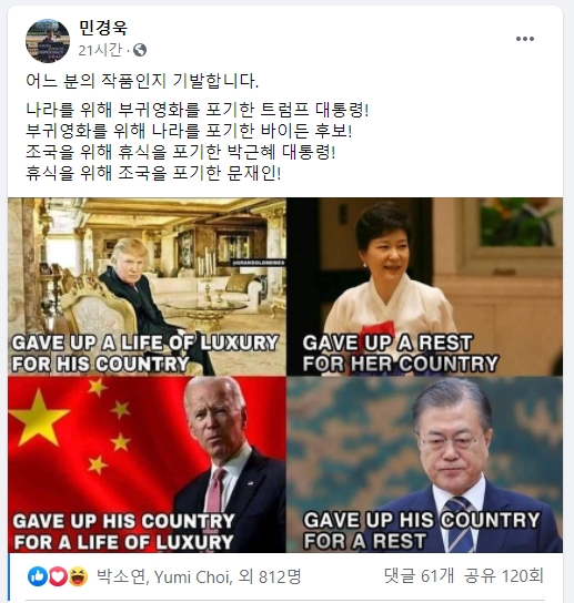 민경욱의원 페이스북 최근 글사진 모음 2020/10/5 자료 디케DIKE 민경욱 0 834 2020.10.05 09:28 https://www.facebook.com/minkyungwook + 47 .