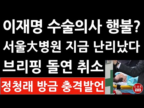'긴급! 서울대병원 이재명 수술 브리핑 돌연 취소! 진료부원장, 수술 의사 나오지 않아! 정청래 긴급 브리핑! (진성호의 직설…