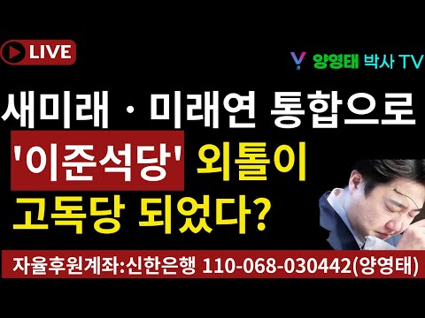 '새미래 ㆍ미래연 통합으로 '이준석당' 외톨이 고독당 되었다?/2024.01.23' 진주 양영태 0 1494 2024.01.24 10:29 https://youtu.be/5lrg-yrp_nc + 84 .