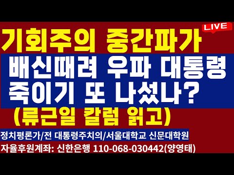 '기회주의 중간파가 배신 때려 우파 대통령 죽이기 또 나섰나? (류근일 칼럼 읽고)/2024.10.22' 꽃사슴 양영태 0 1078 2024.10.22 17:31 https://youtu.be/FaZlV7ccOqU + 55 ..
