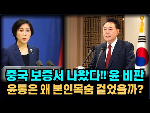 중국 인증서 나왔다!! 중국 외교부 대변인 윤석열 비판 - 민주당은 간첩법 왜 반대할까