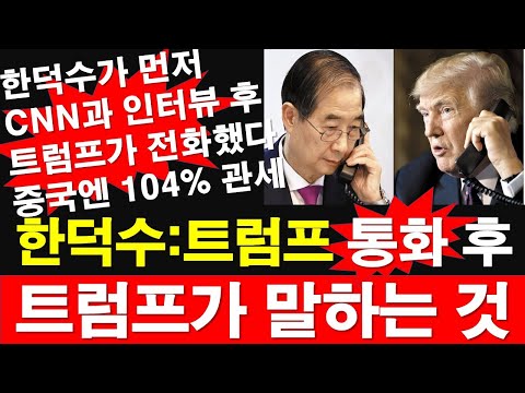 한덕수:트럼프 통화 후, 트럼프가 말하는 것. 한덕수가 먼저 CNN과 인터뷰 후, 트럼프가 전화했다. 중국엔 104% 관세. …