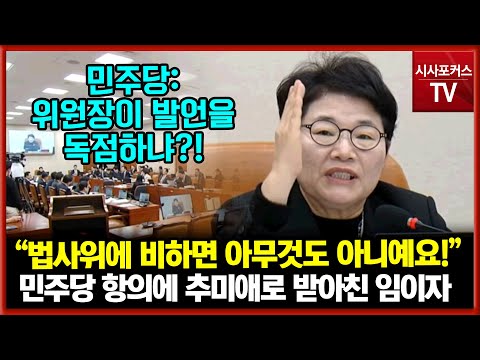 위원장이 발언 독점하냐?"...민주당 항의 추미애로 받아친 국민의힘 임이자 "법사위에 비하면 아무것도 아냐!…